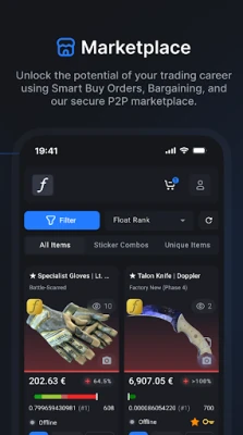 Marketplace Use the CSFloat marketplace with hundreds of thousands of skins available to buy, or sell your own skins! Trade on the go by using the app without needing a desktop!