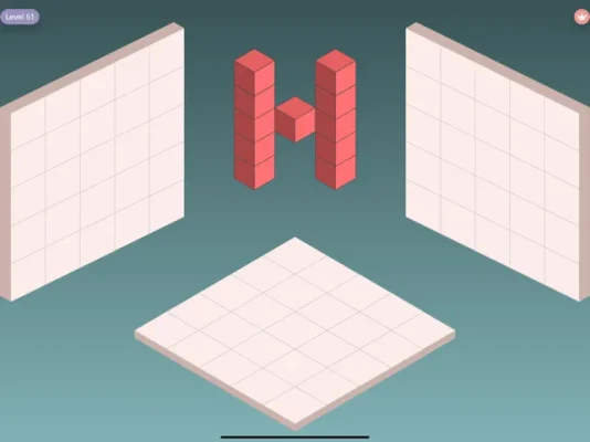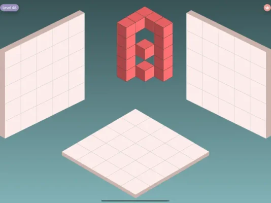 Cube is a perspective puzzle game. You need to observe the projection of three-dimensional geometric figures, including front view, side view and top view.