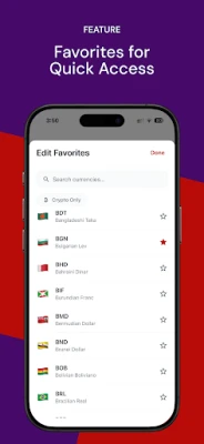 Favorites List: Save your most frequently used currencies (e.g., USD to EUR) for quick access.