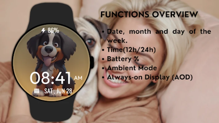 Bring joy to your wrist with the Cute Dog Watch Face—a delightful WearOS watch face featuring a happy cartoon puppy that’s sure to make you smile every time you check the time. Designed for dog lovers and anyone who enjoys fun, heartwarming designs, this watch face adds charm to your everyday style.
