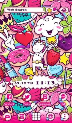 Graffiti art filled with unicorns, jelly beans, and sweets. A stylish theme for that feminine you.