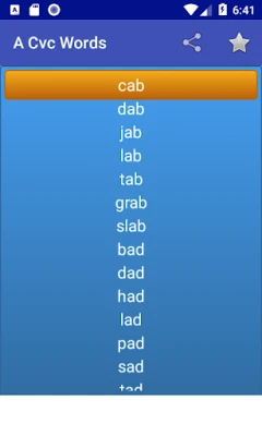 Key Features: - CVC Word Practice: Improve reading skills and phonics proficiency with a variety of CVC words. - Audio Pronunciations: Words are pronounced from the speaker for easy learning and pronunciation. - Vowel Group Division: Words are categorized into 5 vowel groups, including Short A, Short E, Short I, Short O, and Short U sounds.