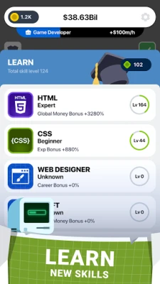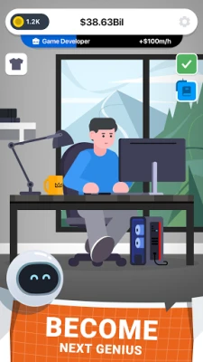 In Cyber Dude you start as a QA tester in an ordinary storage room with an old computer. By tapping the screen, you start earning money, gradually increasing your wealth. Spend your earnings on things like buying a new home, upgrading your computer equipment, or learning skills to earn even more with each tap. Become smarter, invest in new legendary items, or learn and start creating apps and games that will help you earn even when you're not playing! Start your adventure now and find yourself on another planet!