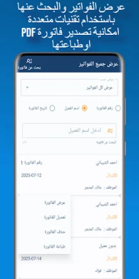 – ابحث، فلتر، وصدّر الفواتير كملفات PDF أو اطبعها مباشرة عبر الطابعة البلوتوث دون الحاجة لبرامج إضافية.