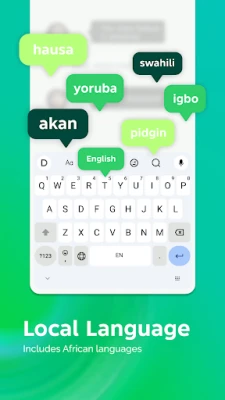 • Optimized Yoruba keyboard, Hausa keyboard, Igbo keyboard, Swahili keyboard, Akan keyboard, and Pidgin keyboard with predictive typing and AI auto-correct