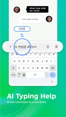 • AI-powered sentence suggestions, typo fixes, and smart keyboard flow