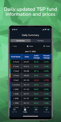 Daily TSP offers a clean user experience and customization capability that result in a personalized way to interact with and analyze TSP data at your finger tips.