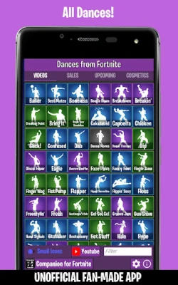 Unofficial App for Emotes, Dances, Skins, Daily Shop and other Cosmetics from the game!