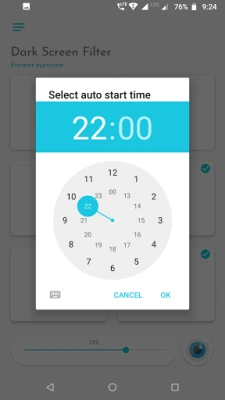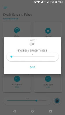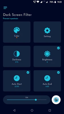 App reduces the blue light by applying color screen filters to your phone screen. With auto start and auto end options, you can configure app to activate screen filter during night automatically.