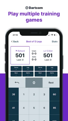 - Play training games: Your Darts Scoreboard for games like 501 vs. Bot, Cricket, or Bobs 27 – Dartcom already offers the most common practice games.