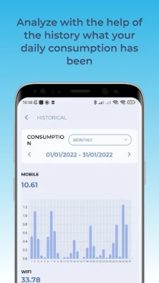 Within the data consumption section you will find the data consumption history where you can always have control of your daily, weekly and monthly data consumption.