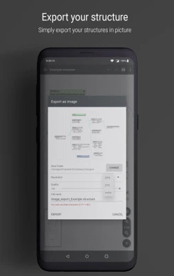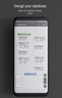 You can create tables, keys, columns, and change parameters, colors for it, and many others. For creating SQL just tap one button and use SQL in your database. If you want to show scheme somebody, just exports in a picture and sends it. Without ads.