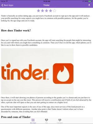 Note: This app is not a dating app. It is an app, which contains various sections, which will help the user to find a relationship. This app is a guide with the best dating apps (with a detailed analysis), tips, techniques, tricks and a love calculator to help you find a partner.