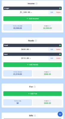 ✓ Categorize: Needs, Wants, Bills, Savings