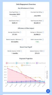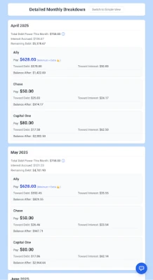 - Visual payoff timeline with monthly progress