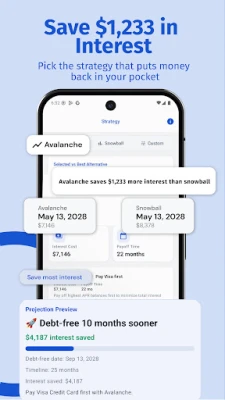 Switch strategies any time and watch your debt-free date update instantly.