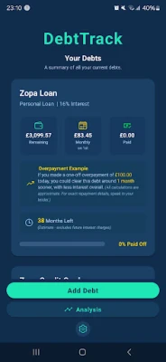 • Secure by design: DebtTrack doesn’t track you or share your data. Everything remains private and under your control.