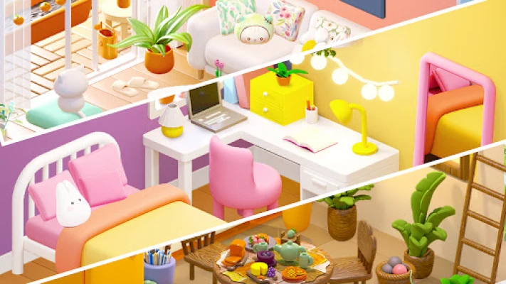 Merge and combine two identical elements in the puzzle game board to create new items and tools to renovate variety rooms such as living room, bedroom🛏️, kitchen, garden🌺 and greenhouse🌲. After merging two same objects, you will receive tools used to unlock and upgrade every piece of furniture and corner of rooms, renovate and paint homes or mansions🖼️🏙️. By complete the process of makeover or redesigning spaces, enjoy the relaxing time and reveal your dream houses.