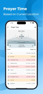 Accurate Prayer Times – Get precise Salah timings, forbidden prayer periods, and sunrise/sunset schedules based on your location.