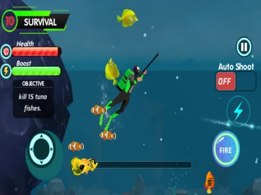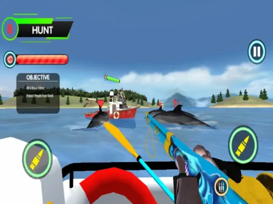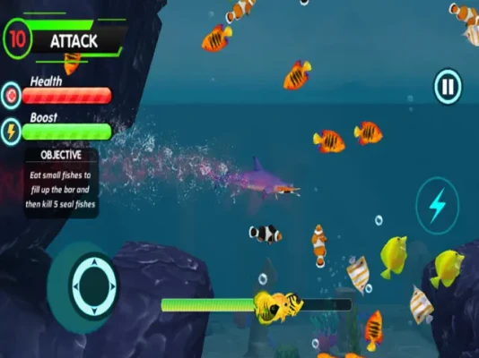 In a shark simulator and fishing game, protect sharks that are on the hunt from the hunters' bullets. Get ready to die from a shark hunting game's starvation if a player slows down the shark simulator's eating speed. In the shark game, a stonefish attack could be deadly for the hungry shark. Allow angry sharks to consume large fish after being attacked by adversary fish so they can heal and compete with them in shark games offline. Establish a benchmark in a shark hunting game so that nobody can surpass it.