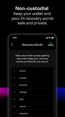 Remain in full control of your funds by taking custody of your 24-word recovery phrase, protected by a 6-digit passcode.