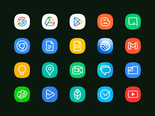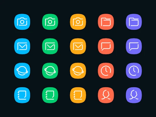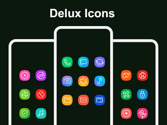 Delux is a pack of line icons with a rounded square background, it is based on the icons of Galaxy devices