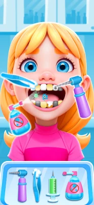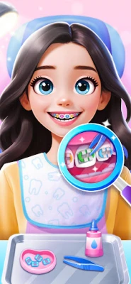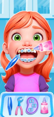 Cleaning up your character's mouth requires more than just brushing their teeth. Replace old fangs and incisors with new ones and treat caries. Rinse the mouth with a special refreshing liquid or a mouthwash and apply gel glue to the teeth to get braces. Moreover, to add some color to the brackets, decorate them with bright heart and star stickers.