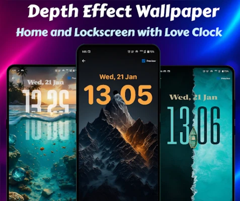 🚀 Download now and personalize your home and lock screen with depth effect wallpapers and custom live clock styles.