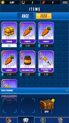 Feed your horse to improve it's stats. Each unique food item improves your horse in a different way!