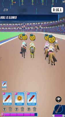 Collect unique race items, each with a unique effect on the race! Use a Rocket Boost to gain massive speed; summon a Rainstorm to drench the competition or use Spiked Spurs to burst through rivals! And more!
