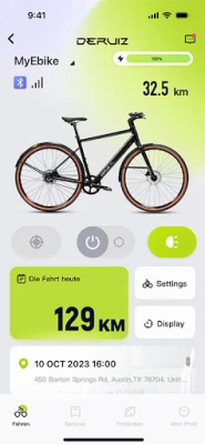 DERUIZ Ebike ist eine intelligente Steuerungsanwendung, die speziell für DERUIZ Elektrofahrräder entwickelt wurde. Mit dieser benutzerfreundlichen und praktischen App können Sie Ihr DERUIZ Elektrofahrrad mühelos steuern und ein intelligenteres und bequemeres Fahrerlebnis genießen. Hier sind die wichtigsten Funktionen unserer App:
