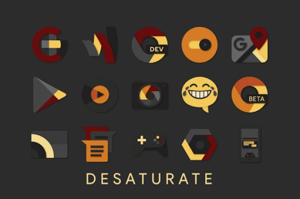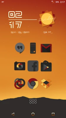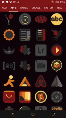 Desaturated colors leaving only red and orange tones with highest quality iconography, hundreds of matching wallpapers included, and full launcher support for all popular launchers!