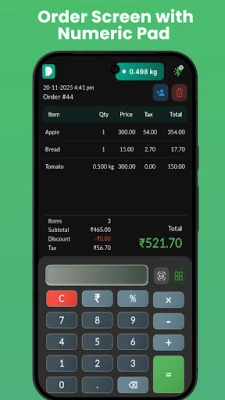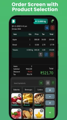 • Fast & Intuitive Sales: Quick item selection, custom item entry, and seamless checkout. • Flexible Discounts: Apply percentage or fixed amount discounts with ease. • Effortless Cash Management: Handle payments with accurate change calculations. • Product Catalog & Search: Easily browse and search inventory in real-time. • Weighing Scale Integration: Integrate with digital weighing scales for accurate billing (ideal for fruits, veggies, and groceries).