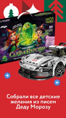 Here you will find all kinds of toys, children's clothing and shoes at low prices, educational and board games, diapers, vitamins for adults and children, children's and sports nutrition, products for pregnant women and newborns, art kits and gifts for every taste and budget.
