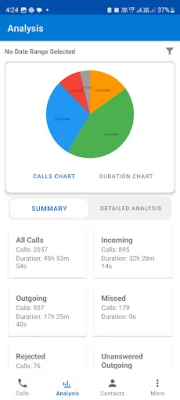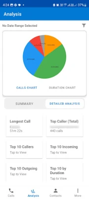 Get detailed visual insights for any contact, including daily incoming/outgoing calls, call durations, missed calls, rejected or blocked calls, and unattended calls. Analyze call patterns at a glance.