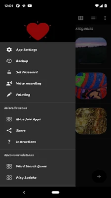 - You can make a backup file of all data. - If you set a password in your dark mode diary then also a biometric login will be activated (if available on your phone) e.g fingerprint, face authentication etc. - You can record voice files, make pantings, share pictures and more.