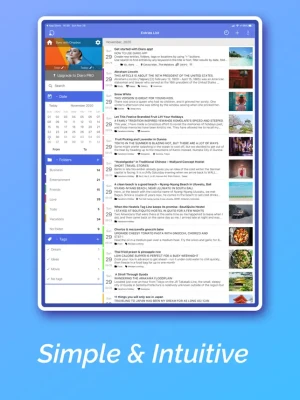 Powerful search and filter functions. Organize diary / journal entries using folders, tags, locations and find records by keyword, filter them by date, tags, folder or even location