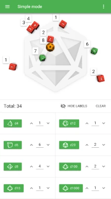 -Eight kinds of dice: d4, d6, d8, d10, d12, d20, d100, and d1000, -Create custom rolls with multipliers and modifiers, -Customize dice and interface colors, -Physics-based dice, randomized by position, orientation, velocity and torque.