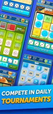 • Dice tournaments are a new, thrilling challenge! Dice Solitaire, Dice Bingo, and Dice Stars are completely new ways to play this classic game! Tournaments are running daily!