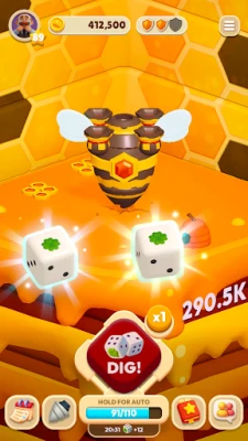 Roll the dice to move and dig through the ground, collect coins, gems, and rare treasures along the way.