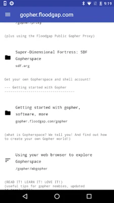 Gopher is a long-lasting technology that in its heyday was touted as a plausible alternative to the World Wide Web. Content is accessed using a simple, text-based protocol detailed in IETF RFC 1436.