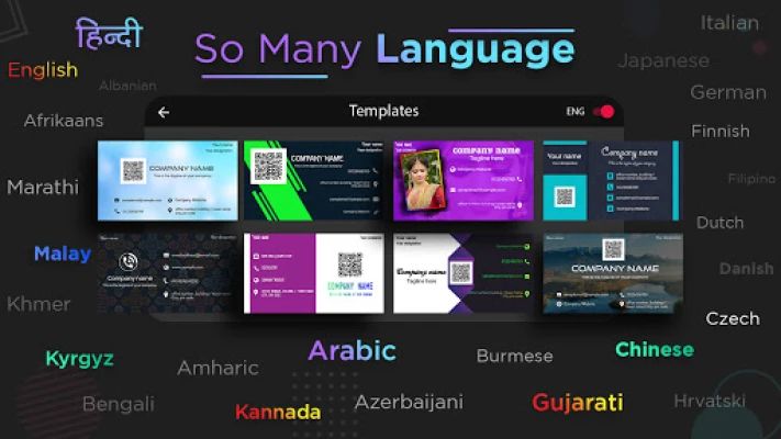 Enjoy creating a digital business card in your preferred language as there are more than 65 languages to choose from. All the designs are also available in selected language.