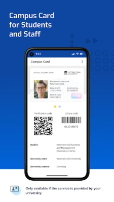 The app is only available if your university has a Digital Campus Card cooperation with Studo. This ensures that the digital ID card is recognized by all institutions at your university. The authenticity of your ID card can also be verified via the QR code - this means that external bodies should also recognize the card without any problems.