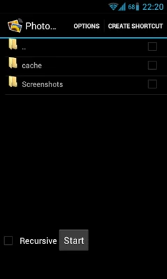 Turn your android device in a digital photo viewer showing a slideshow of local files, photos from network shares (samba/smb). The photos can also be selected from your Flickr or Dropbox account.