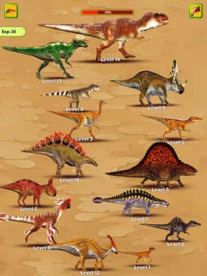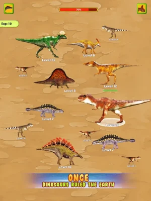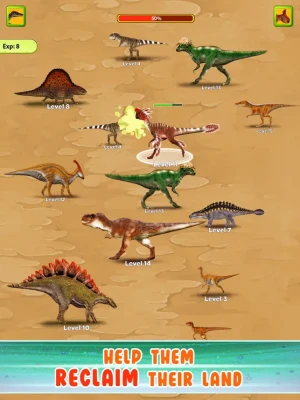 - Attack and eat dinosaurs whose level is lower or equal to your level by easily sliding the screen. Through that, you can accumulate enough exp to evolve into a more advanced dinosaur.