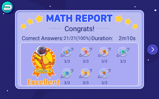 1. Grade k-5, each grade has 4 - 12 levels, each level has a math report; 2. Addition, subtraction, multiplication, division, fraction and decimal operation practice; 3. Meet Common Core Math Standards; 4. More skills and modules keep adding in.