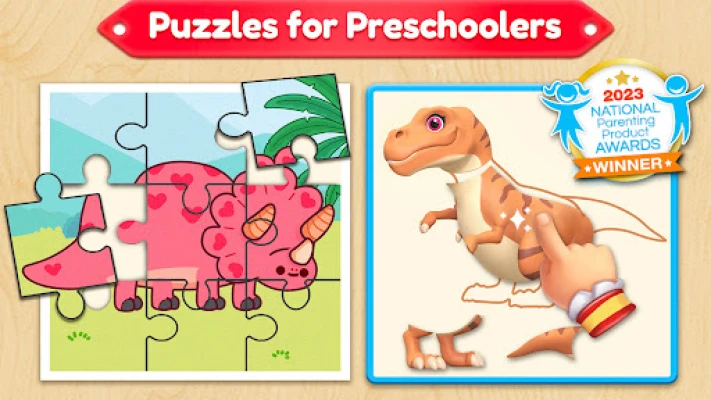 Every puzzle and game features a colorful illustration — from animals and dinosaurs to princesses and trucks. Jump in and solve hundreds of puzzles or get creative with open-ended shape and sticker games.