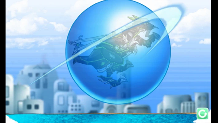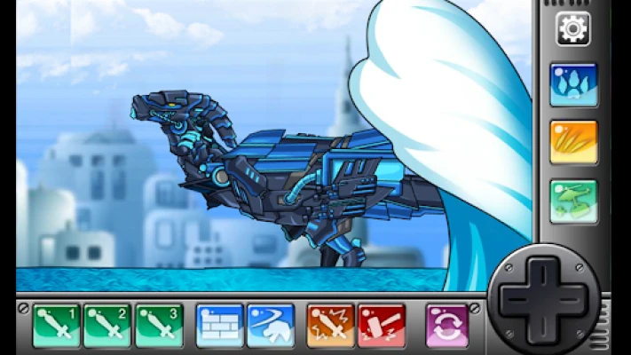 "Ninja Parasau is a dino robot belonging to the "Blade of Ninja" It can use water property technique even in the plain. It can make water quickly and cause a tsunami, Or fires a water shuriken from a body-mounted cannon. It is Blade Stego's loyal assistant.
