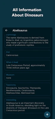 📖 Information-Packed: Easily access in-depth information about dinosaurs. Discover each species' characteristics, time periods, and more.