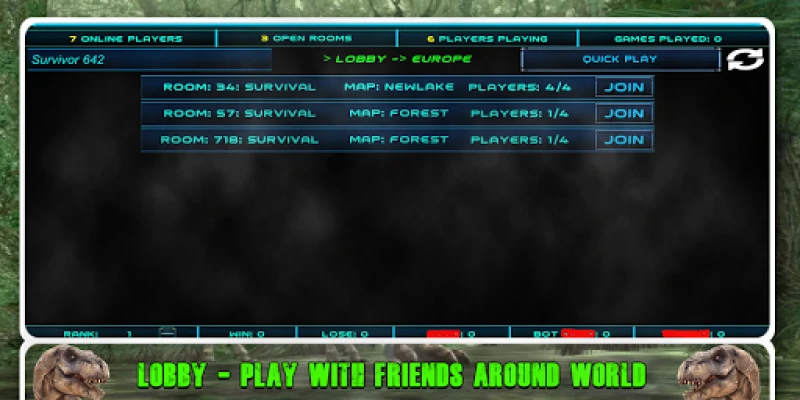 Dinosaur online games multiplayer simulator gameplay was extremely tough. You have to play two modes of players first person shooting games. Enjoy free dinosaur hunting games free with dinosaurs searching in the Jungle and attacking wild animals.
